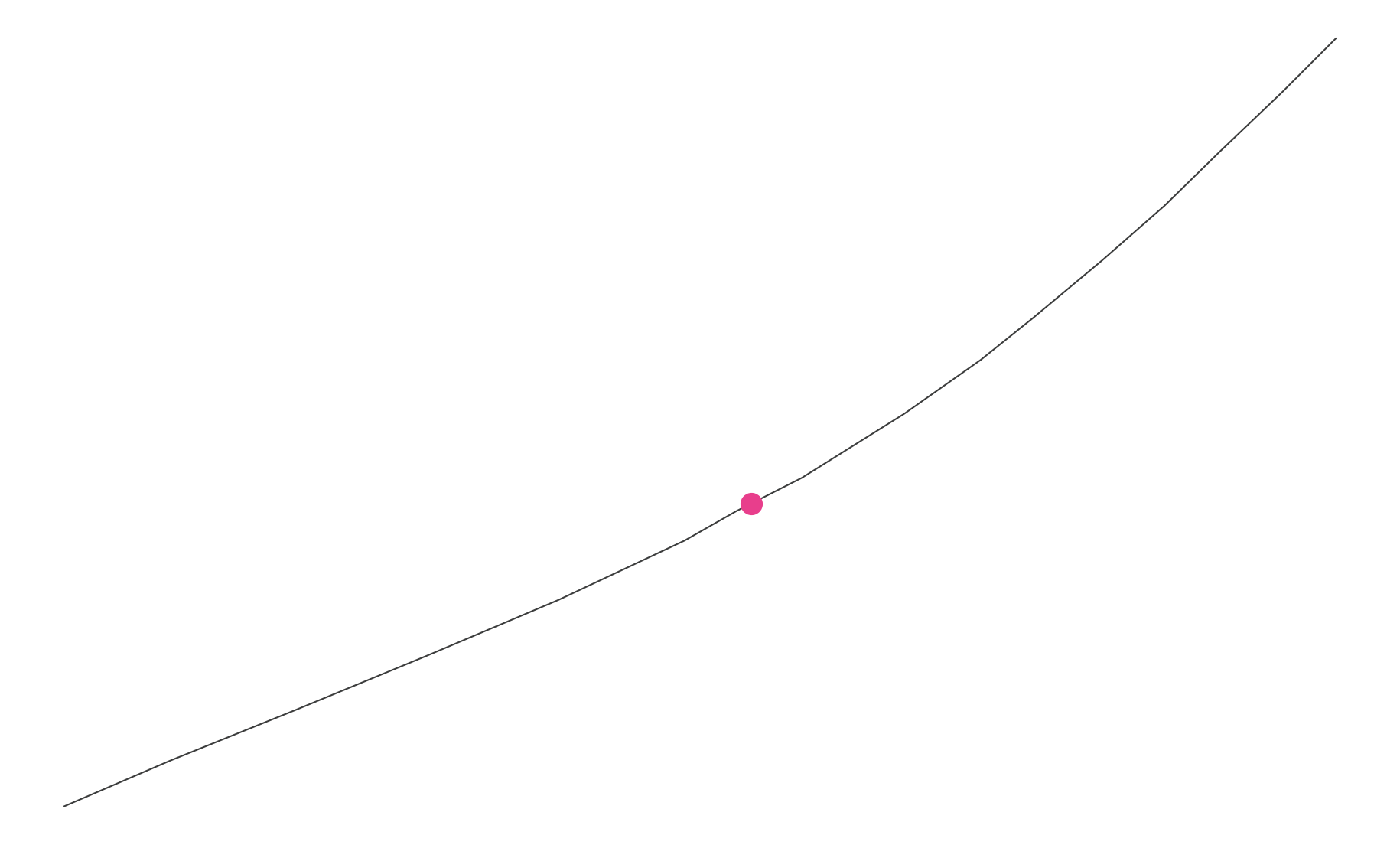 GeoDjango comes with a native way of retrieving a simple line's geographic center, but will put us off in the presence of complex MultiLineStrings. Let's help ourselves to more advanced GeoDjango ORM tools for a flexible approximation of a marker placement.